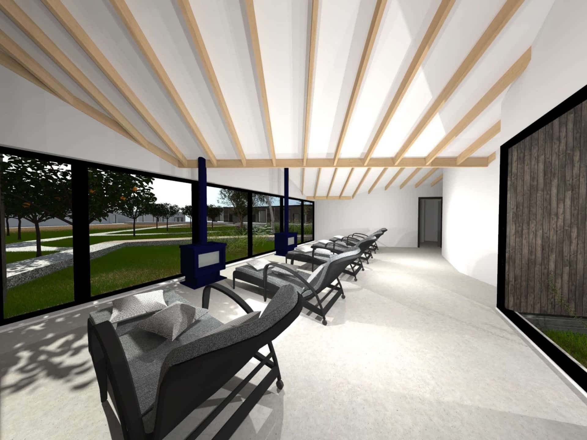 Our proposals showed respect for the heritage and local significance of the original building, sensitively introducing a contemporary-style, single-storey solution. We focused on blending the buildings into the landscape and connecting inside with outside spaces through using vertical timber cladding, vaulted ceilings and a courtyard-style layout.