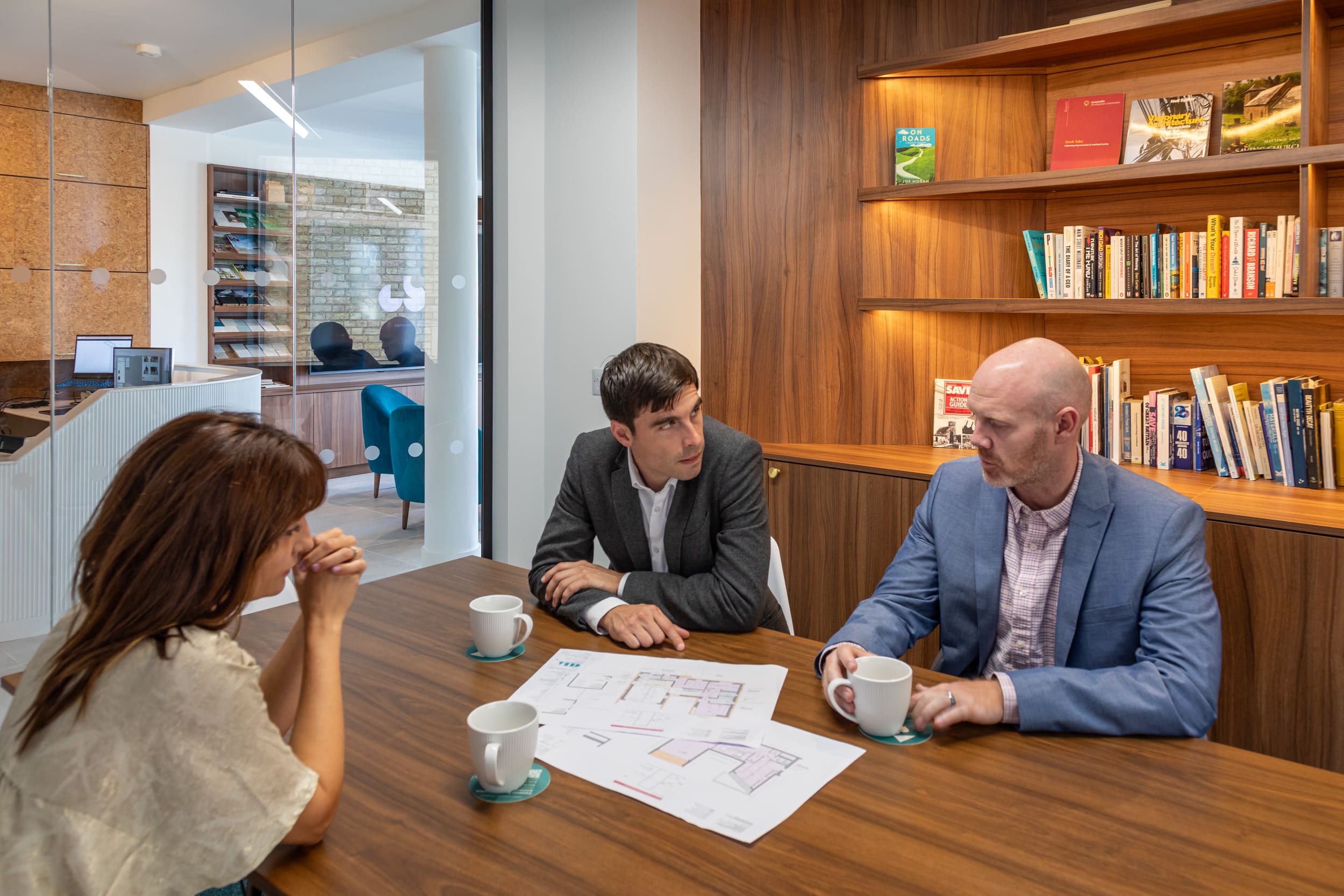 The brief was to design something contemporary but still respect the historic nature of the property. The use of a range of textures and finishes like cork, walnut, metallic venetian plaster with CBBA brand colours make the space feel warm, inviting but also elegant and high end. The end result is an amazing multipurpose commercial space which offers the wow factor for every visitor.