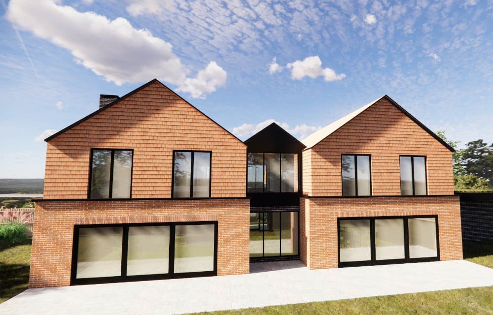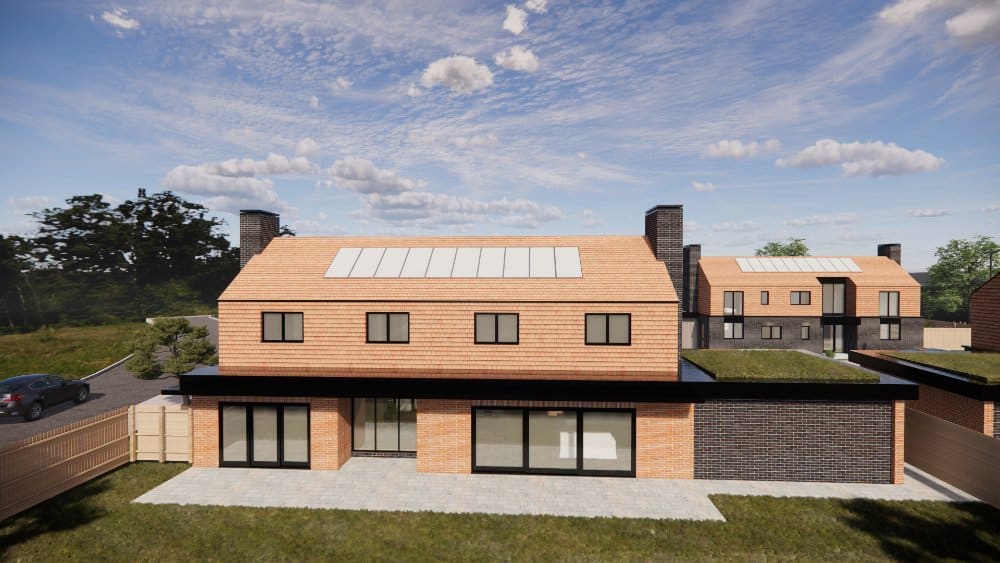 Sharing the local village vernacular of brick and clay tiles, these five houses each have open-plan living accommodation with a separate office space and snug area.